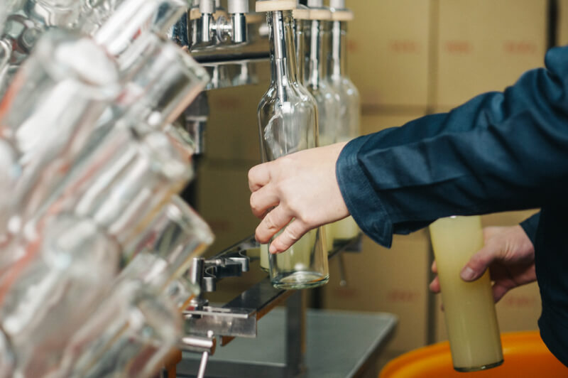 有着⽇本酒酿造经验的寺尾社⻓,⼀个⼈开始经营现在的酒造时,就⻘睐家乡的⽔果。酒造使⽤的⽔果种类繁多,经过反复调试,精⼼酿造出适合每个品种的利⼝酒。仅仅是苹果就多达20余种,试饮不同品种⽔果酿造的利⼝酒更是这⾥的快乐之⼀。