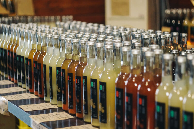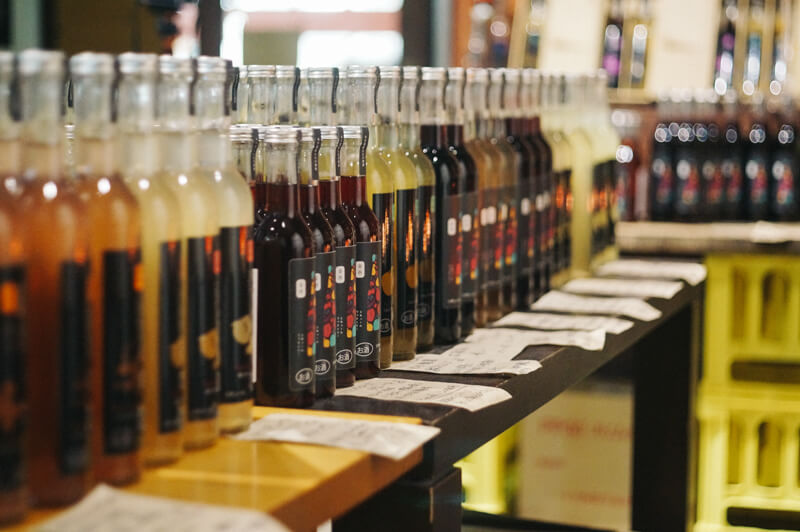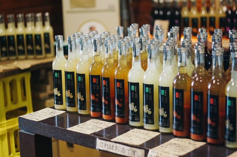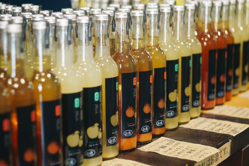 有著日本酒釀造經驗的寺尾社長,一個人開始經營現在的酒造時,就青睞家鄉的水果。酒造使用的水果種類繁多,經過反覆調試,精心釀造出適合每個品種的利口酒。僅僅是蘋果就多達20餘種,試飲不同品種水果釀造的利口酒更是這裡的快樂之一。